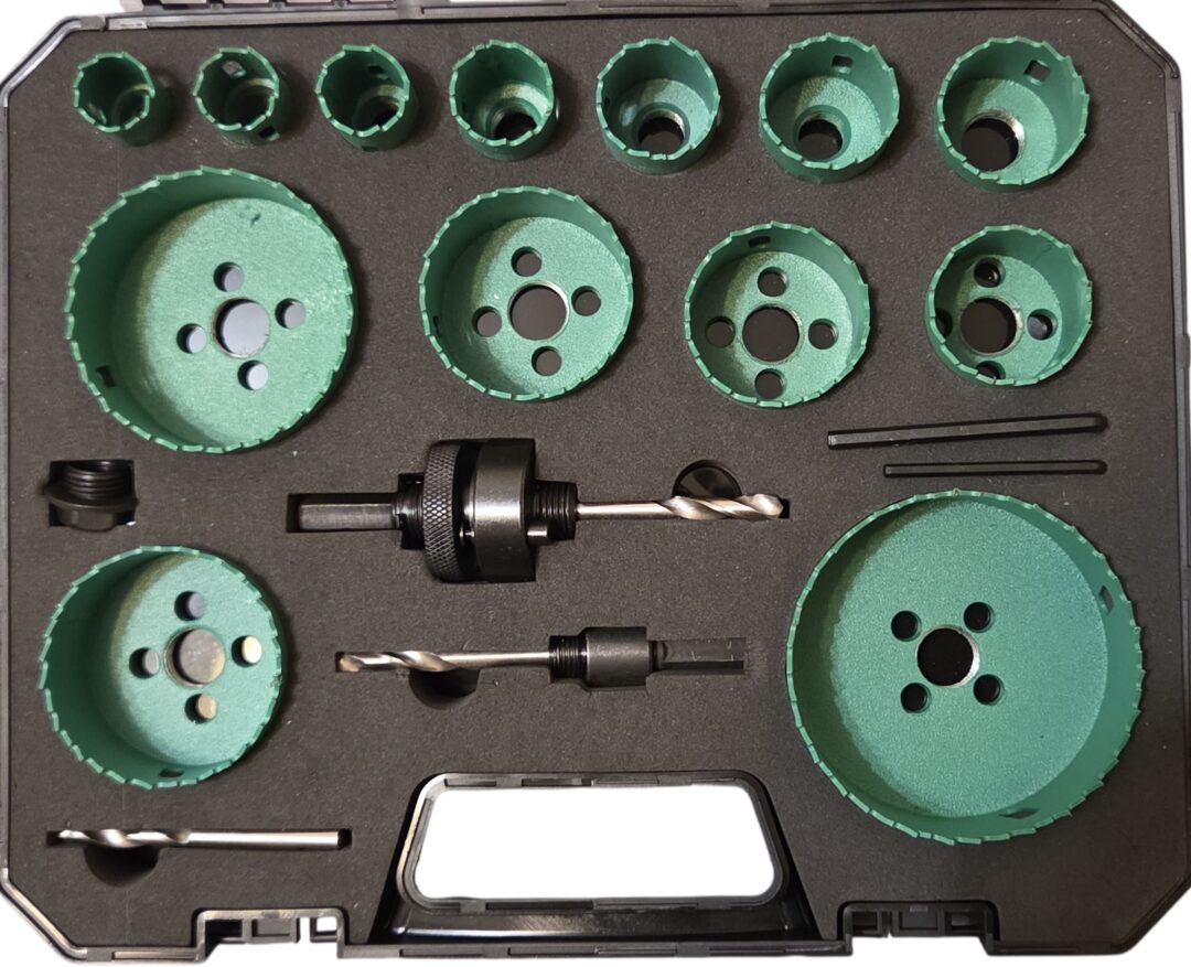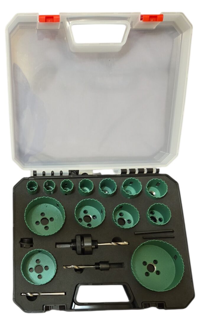 Šis universalus bi-metall karūnų rinkinys yra idealus įrankis tiek profesionalams, tiek mėgėjams, siekiantiems tiksliai ir efektyviai gręžti skyles įvairiose medžiagose. Rinkinį sudaro 16 įvairių skersmenų karūnų (nuo 19 mm iki 82 mm), leidžiančių atlikti darbus nuo smulkių iki didelių angų, pritaikytų elektros, santechnikos, vėdinimo ir kitų montavimo darbų poreikiams.