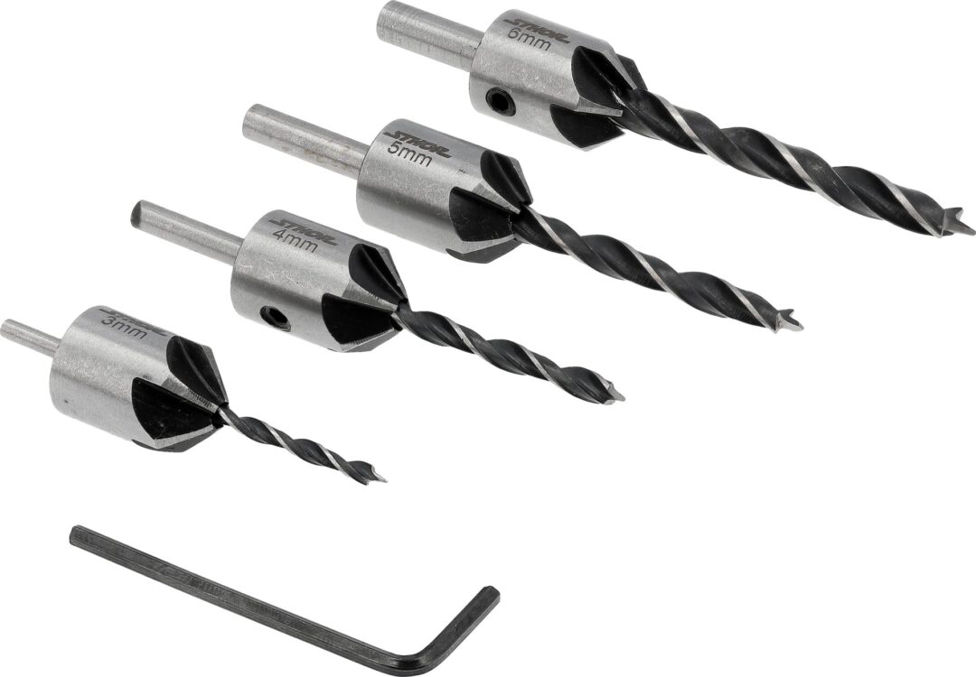 Rinkinį sudaro keturi grąžtai su skersmenimis 3, 4, 5 ir 6 mm, ilgiais 60, 74, 85 ir 92 mm. Tai universalus įrankių rinkinys, tinkamas medienos apdirbimui, leidžiantis vienu metu padidinti, suformuoti ir nusklembti skyles arba pašalinti šerpetojančias dalis.