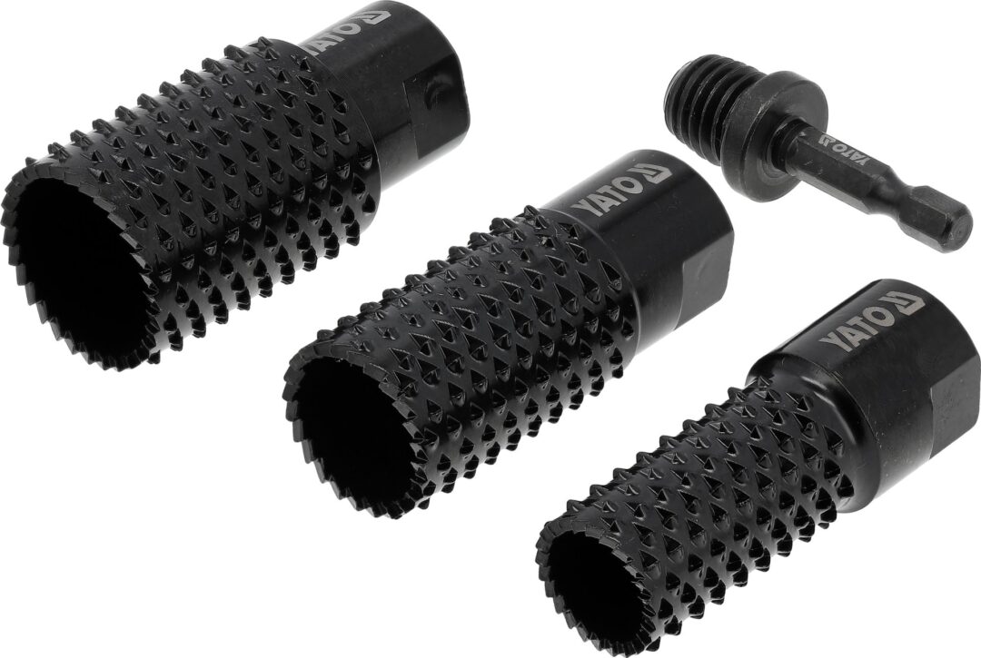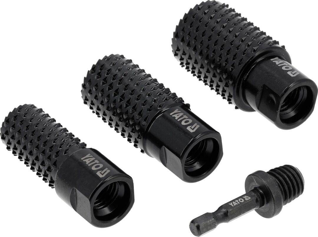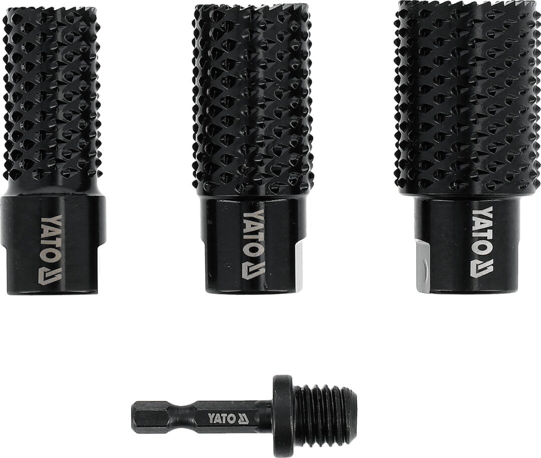 YATO cilindrinių medienos šlifavimo diskų rinkinys (4 vnt.) – tai aukštos kokybės įrankių rinkinys, skirtas greitam ir efektyviam medienos paviršių apdirbimui. Rinkinį sudaro trys skersmenų – 20 mm, 25 mm ir 30 mm – cilindriniai diskai, kurie leidžia tiksliai formuoti, šlifuoti ir išlyginti medienos paviršius. Komplekte taip pat yra adapteris su 1/2 colio (12,7 mm) šešiakampiu kotu, užtikrinantis patogų ir greitą montavimą į elektrinius įrankius.