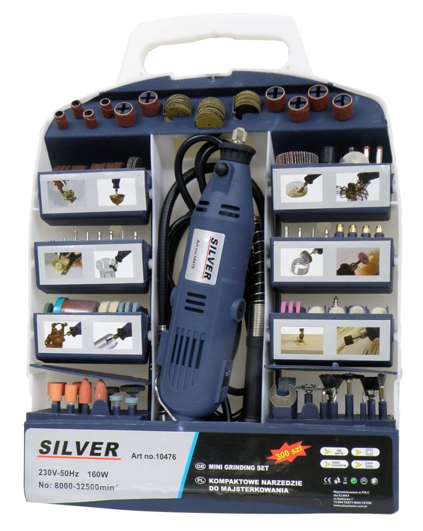 Silver Tools Mini Daugiafunkcis Šlifuoklis su Priedais – 160 W, 300 vnt. rinkinys