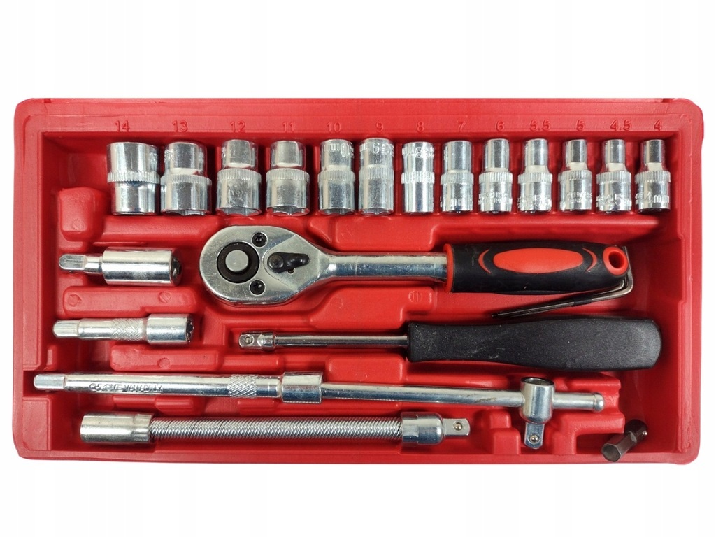 Galvučių su terkšle rinkinys 1/4″, 46 vnt. –46 dalių įrankių komplektas, pagamintas iš chromo-vanadžio plieno (Cr-V). Šis rinkinys skirtas tiek mechanikams, tiek entuziastams, kurie vertina tikslumą, patogumą ir ilgaamžiškumą atliekant montavimo ar remonto darbus. Kompaktinė, praktiška dėžutė leidžia patogiai laikyti ir transportuoti visus įrankius.