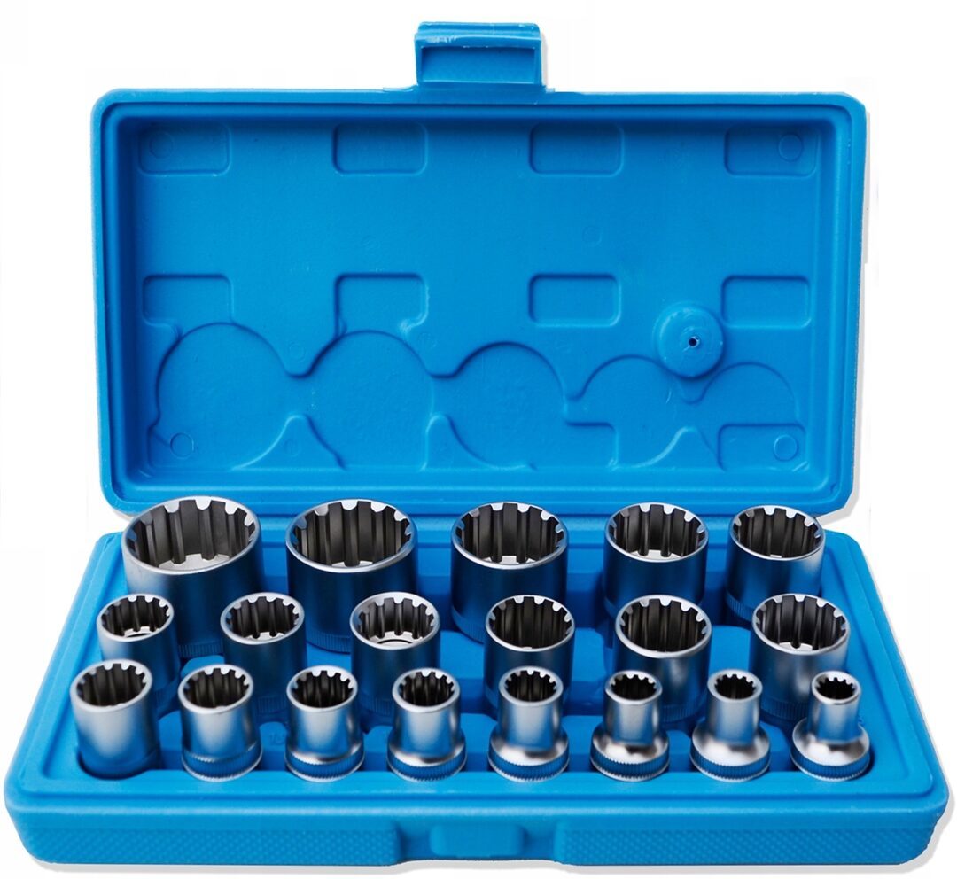 SPLINE galvučių rinkinys – tai patikimas ir patogus sprendimas įvairiems mechanikos darbams. Šis rinkinys puikiai tinka profesionaliems mechanikams, entuziastams ir visiems, kurie vertina kokybę ir funkcionalumą. Rinkinį sudaro įvairių dydžių „SPLINE“ raktai, kurie leidžia atlikti plataus spektro darbų su 1/2 colio sukimo įtaisais.