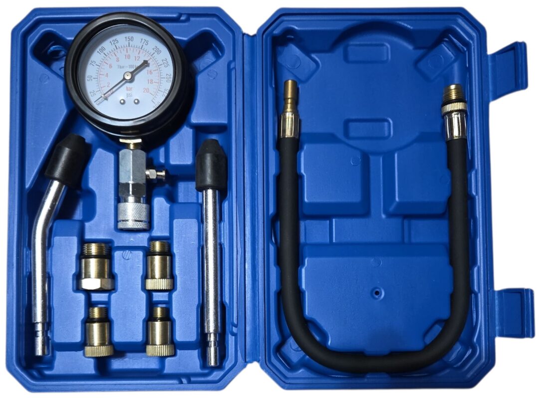 Variklio kompresijos matuoklis skirtas tiksliai matuoti cilindrų suspaudimo slėgį. Rinkinys suteikia galimybę patikrinti variklio darbą bei nustatyti galimas problemas dėl susidėvėjusių vožtuvų, stūmoklių žiedų ar cilindrų sienelių. Tai nepriklausomas ir patikimas įrankis tiek profesionaliems serviso meistrams, tiek entuziastams, atliekantiems diagnostiką namuose.