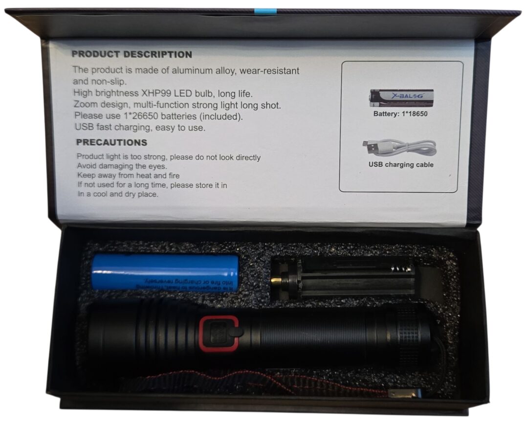 Profesionalus įkraunamas prožektorius su CREE XHP99 – tai aukštos kokybės ir patikima apšvietimo priemonė, skirta tiek profesionalams, tiek entuziastams, kurie vertina galingą, ryškią ir patikimą šviesą net ir pačiose sudėtingiausiose situacijose.
