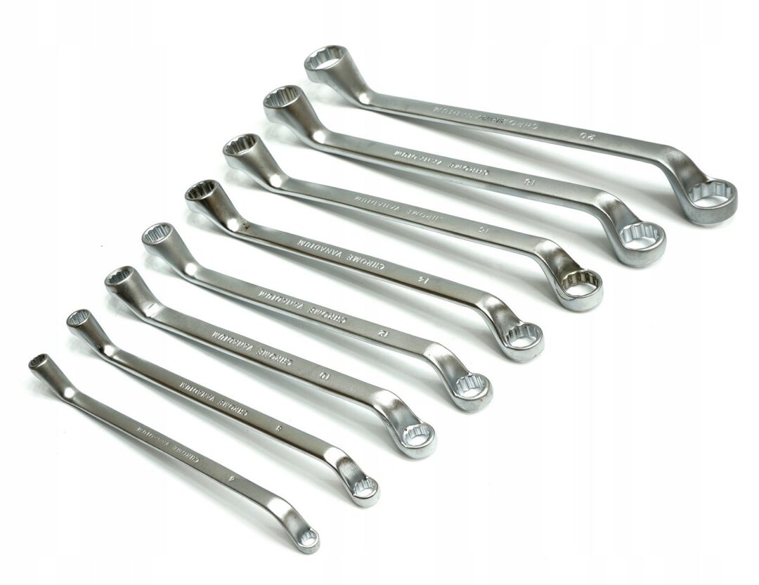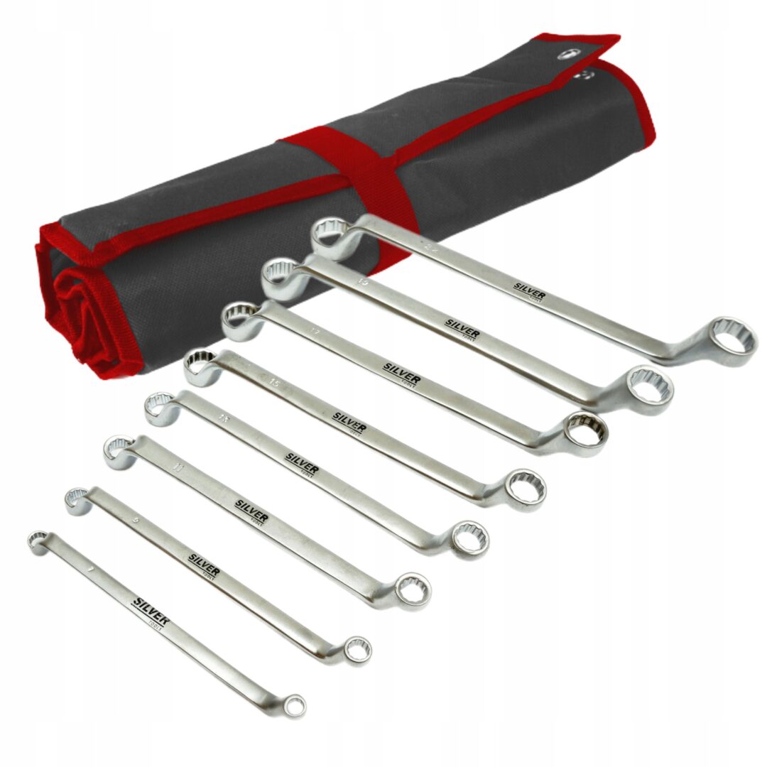 Rinkinį sudaro 8 lenkti žiediniai raktai, skirti patogiai ir efektyviai dirbti dažnai pasitaikančiose vietose. Raktų dydžiai svyruoja nuo 6 mm iki 22 mm, apimant tokias dažnas reikšmes kaip 6×7 mm, 8×9 mm, 10×11 mm, 12×13 mm, 14×15 mm, 16×17 mm, 18×19 mm ir 20×22 mm, todėl galite būti tikri, kad turėsite tinkamą įrankį bet kokiai užduočiai. Raktai pasižymi lenkta forma, kuri leidžia patogiai pasiekti sunkiai prieinamas vietas ir pagerina sukibimą bei valdymą.